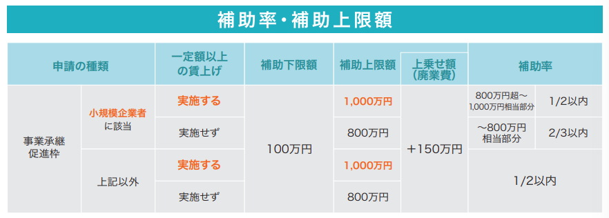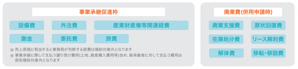 親族内承継や従業員承継等の事業承継を契機として経営や事業を引き継ぐ予定である中小企業者及び個人事業主が、引き継ぐ予定である経営資源を活用するための設備投資等に係る取り組みを行う際の費用の一部を補助することで、中小企業者等の生産性を向上させることを目的とした補助金。